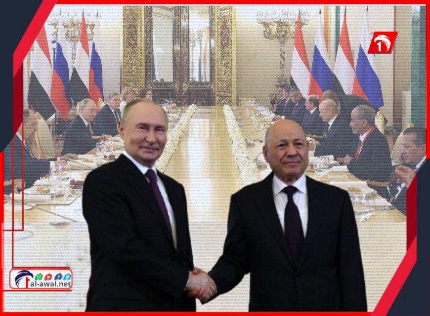 وكان العليمي وصل إلى موسكو في زيارة رسمية، وعقد، الأربعاء، جلسة مباحثات مع الرئيس فلاديمير بوتين تركزت على «سبل تعزيز علاقات التعاون، وتنسيق المواقف ووجهات النظر إزاء مختلف القضايا ذات الاهتمام المشترك»، وفق ما ذكر الإعلام الرسمي اليمني.