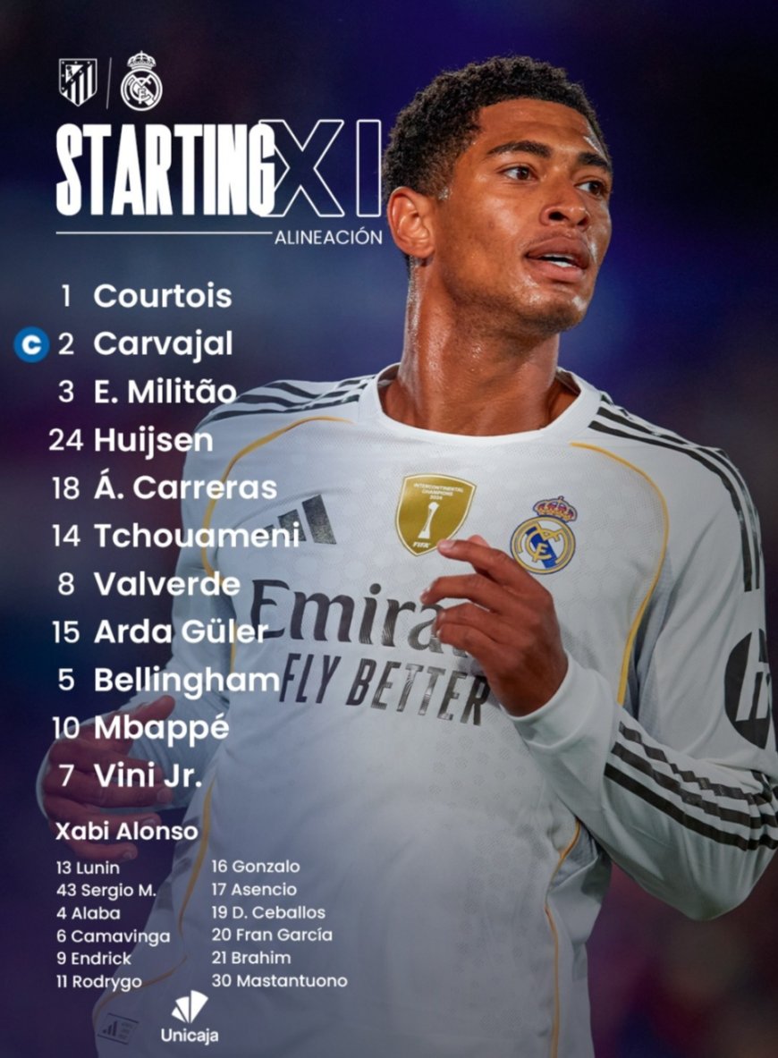 فيما كشف تشابي ألونسو المدير الفني للريال عن تشكيل الملكي لخوض موقعة الديربي، والذي تمثل في: