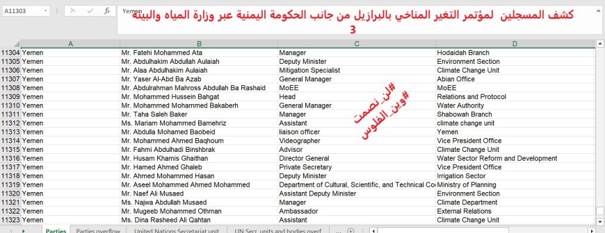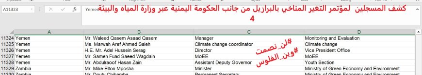شلني يا دريول!!.. بالوثائق (140) اسمًا لقوائم مسرّبة لوفد اليمن المشارك في مؤتمر المناخ بالبرازيل!