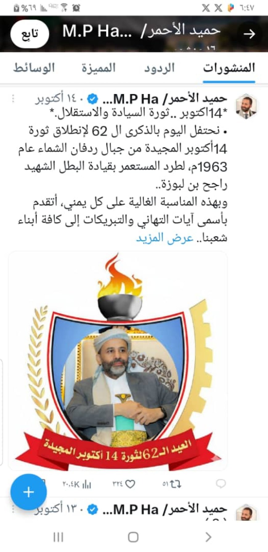 بالصورة (حميد الأحمر) يستفز أبناء شهداء ثورة 14 أكتوبر.. تفاصيل!!