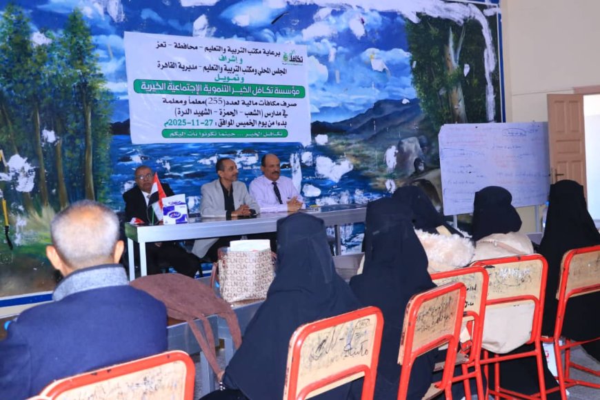 بتمويل من مؤسسة تكافل الخير .. نائب مدير مكتب التربية يدشن مشروع المكافآت المالية لـ 255 معلما ومعلمة في مديرية القاهرة بتعز