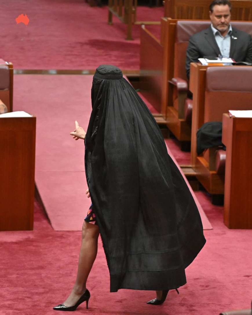 أغضبت زملاءها وأثارة جدلا عالميا!.. بالفيديو سخرية السيناتورة هانسون بارتدائها (البرقع) في قاعة البرلمان الأسترالي