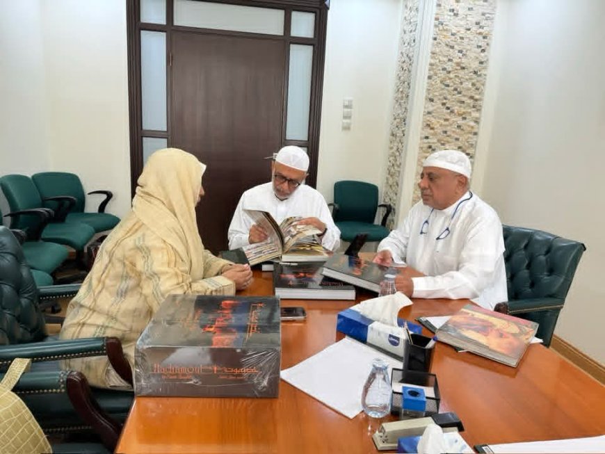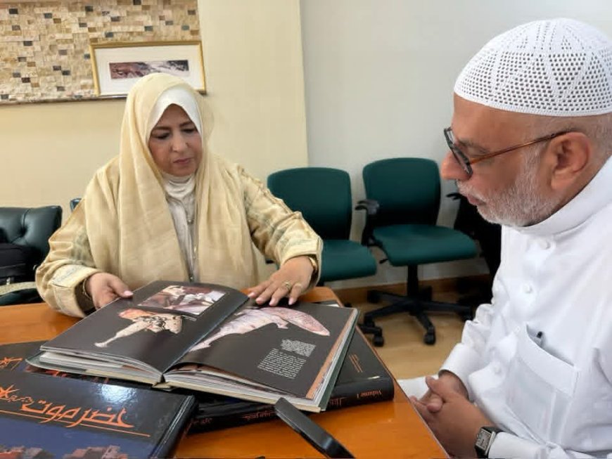 .. واطلعت باعقيل المهندس بقشان علي احدث إصداراتها المصورة .. حول الحرف اليدوية في الجزيرة العربية .. واستعرضت ايضا موسوعتها المصورة الشهيرة عن حضرموت .. وتضم اكثر من 1000 صورة مميزة عن حضرموت .. اصدرتها في 3 مجلدات فاخرة الطباعة والحجم ايضا ..