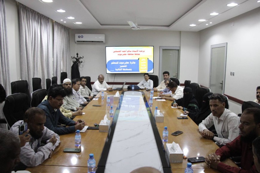 أطلق مكتب وزارة التربية والتعليم بمحافظة حضرموت الساحل جائزة حضرموت للمعلم المتميز بنسختها الثانية 2026م برعاية الأستاذ سالم أحمد الخنبشي محافظ محافظة حضرموت. وفي مستهل الاجتماع الذي حضره الأستاذ علوي أحمد الحامد نائب المدير رئيس شعبة التدريب والتأهيل بالمكتب ورؤساء الشعب والدوائر، أشار المدير باعباد إلى النجاح الذي تحقق في نسختها الأولى 2025م، وما أحدثته من روح إيجابية في الميدان التربوي كان من أكبر الحوافز التي أسهمت في الإعلان الرسمي عن إطلاق جائزة حضرموت للمعلم المتميز في نسختها الثانية 2026م، مشيراً إلى أن ما تحقق كان بفعل تكامل الجهود وتعاون الإدارات والشُعب