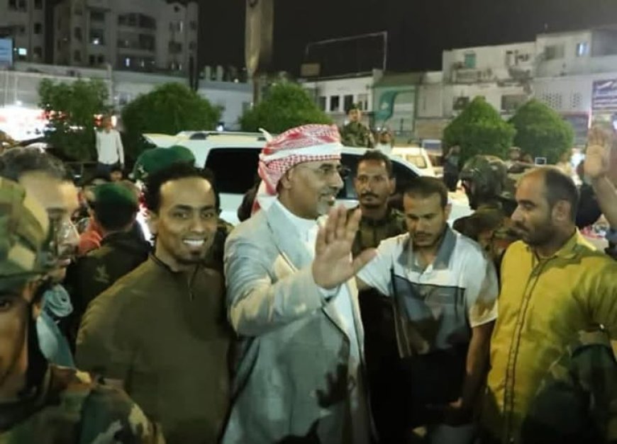 بالفيديو والصور.. لحظة وصول رئيس الانتقالي (الزبيدي) إلى ساحة العروض بعدن