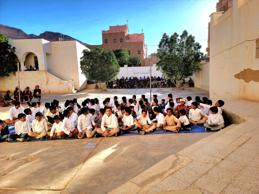 حضر الحفل: المعلمين واولياء الأمور وأهالي المنطقة والطلاب والطالبات