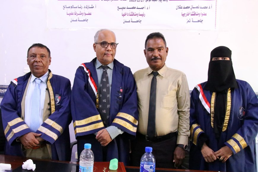 نالت الباحثة *نادية محمد سالم بن عثمان* درجة الدكتوراه بتقدير امتياز من جامعة عدن .