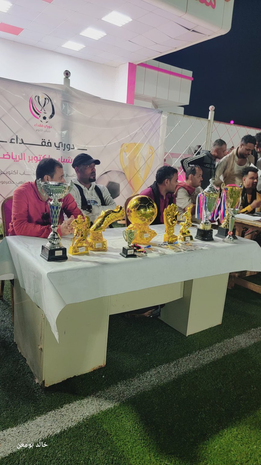 مضيفا الى انه تم اختيار جوائز عينية تشعل المنافسة بين المشاركين من البداية وحتي مسك ختام البطولة. معلنا عن بدء تدشين الدوري مباراة الافتتاح التي تجمع نجوم فريق شباب اكتوبر مع قدامى نجوم منتخب حضرموت مساء الجمعة المقبل تحت الأضواء الكاشفة بملعب نادي الشعب
