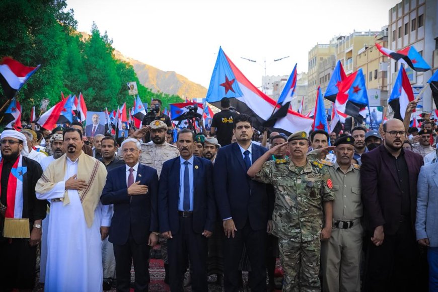 وتخللت الفعالية فقرات متعددة شملت تلاوة آيات من القرآن الكريم، وأداء النشيد الوطني الجنوبي، وفقرة شعرية عبّرت عن روح الثورة والإصرار الشعبي، قبل أن تُختتم ببيان ختامي جددت فيه الجماهير تفويضها للقيادة السياسية الجنوبية، والتأكيد على دعم القوات المسلحة الجنوبية وقوات النخبة الحضرمية، والمضي قدمًا حتى تحقيق الحرية والسيادة واستعادة دولة الجنوب العربي الاتحادية المستقلة كاملة السيادة.