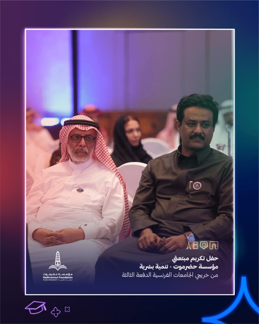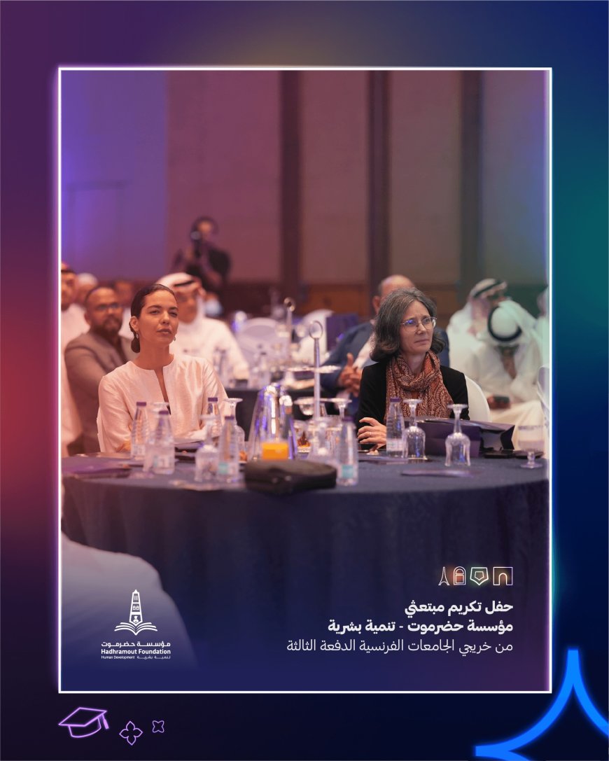 احتفت مؤسسة حضرموت-تنمية بشرية بتخريج الدفعة الثالثة من مبتعثي المؤسسة الخريجين من الجامعات الفرنسية في مدينة جدة بالممملكة العربية السعودية ضمن مشروع الابتعاث النوعي الذي تموله المؤسسة بالتعاون مع منظمة "كامبس فرانس".