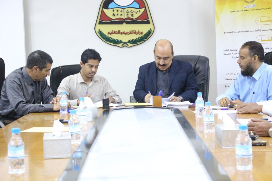 وفي مستهل اللقاء الذي ضم الأستاذ أمين عبدالله باعباد مدير مكتب وزارة التربية والتعليم بالمحافظة والمدير العام لشركة رواشن للتجارة الاستاذ عمر سعيد بن مصيقر المدير العام للشركة بحضور الأستاذ علوي أحمد الحامد نائب المدير العام رئيس شعبة التدريب والتأهيل والدكتور ربيع بن علي العوبثاني عضو مجلس إدارة بنك حضرموت وعدد من قيادات المكتب بالمحافظة.