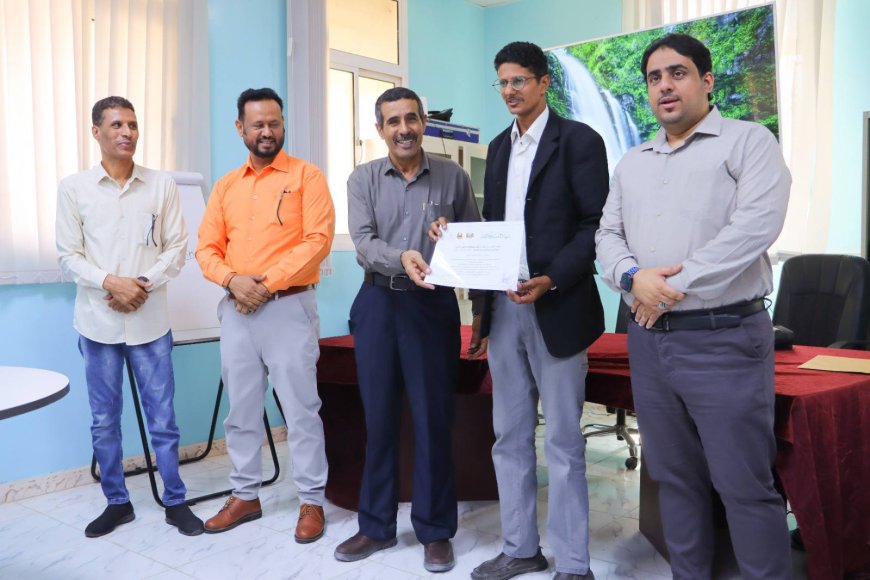 كرم الأستاذ علوي أحمد الحامد نائب المدير رئيس شعبة التدريب والتأهيل بمكتب وزارة التربية والتعليم بساحل المشاركين من المتخصصين في دائرة وأقسام الإعلام التربوي على مستوى مديريات الساحل في فعاليات الدورة التدريبية النوعية بعنوان تطوير المحتوى الرقمي للإعلام التربوي على مستوى المحافظة والمديريات بإشراف مكتب الوزارة بالمحافظة وضمن خطة دائرة التدريب والتأهيل بتمويل وتنفيذ مؤسسة حضرموت تنمية بشرية.