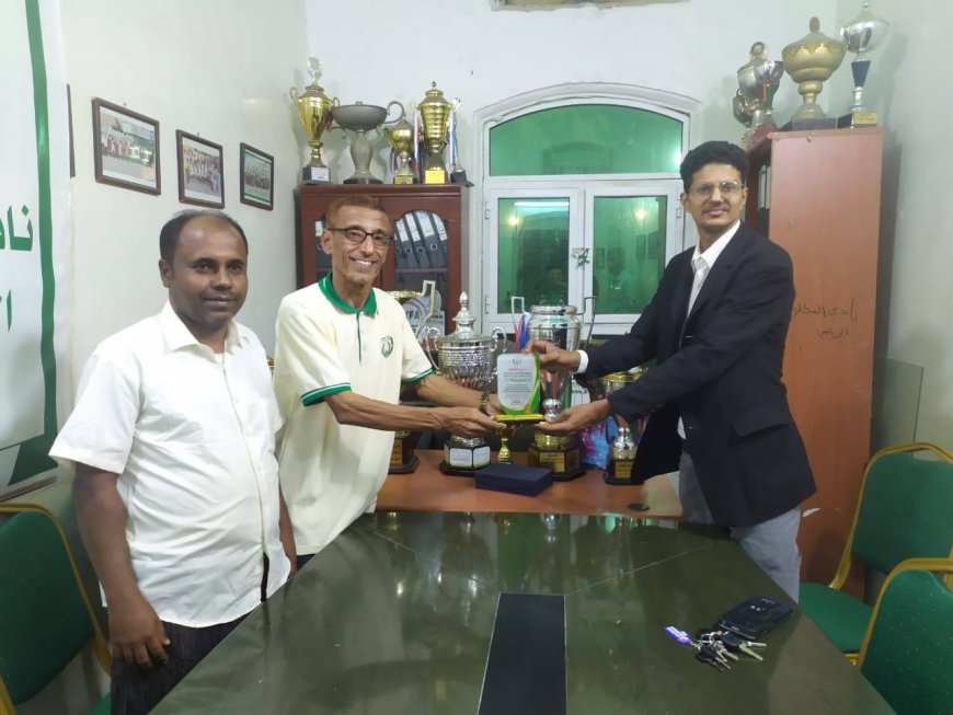 جاء ذلك في لقاء عقد بمقر النادي بحضور فادي سالم حقان رئيس الاتحاد بمعية الأمين العام اشرف سالم فرحان و مسؤول التدريب والتأهيل عادل عبدالله المشجري و المسؤول المالي بالاتحاد ومن جانب النادي حضر الكابتن صبري صالح العسل مسؤول النشاط بالنادي والزميل محمد الحسني المحرر الصحفي بالمركز الاعلامي للنادي .