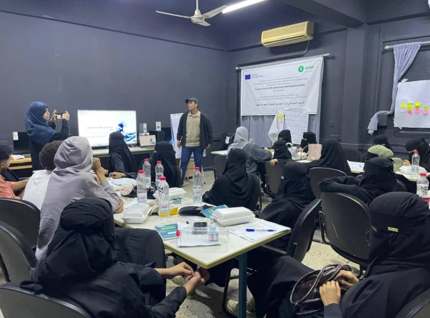 نفذ المعهد التقني الصناعي بالعاصمة المؤقتة عدن أعمال مناقشة مشاريع رواد الأعمال الشباب ضمن دورة ريادة الأعمال في المشاريع الصغيرة الممولة من الاتحاد الاوروبي بالشراكة مع منظمة اوكسفام الخميس الموافق 12/ 2/ 2026 .