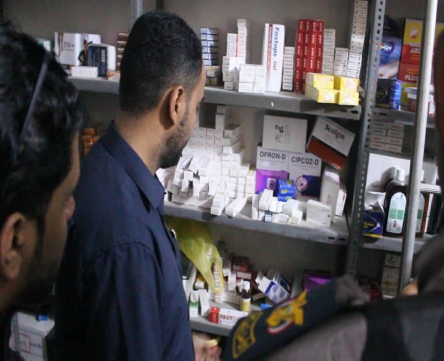 ضبط مخزن أدوية يروّج الحبوب المخدرة والمهدئة بطريقة غير مشروعة بمنطقة بويش شرق المكلا