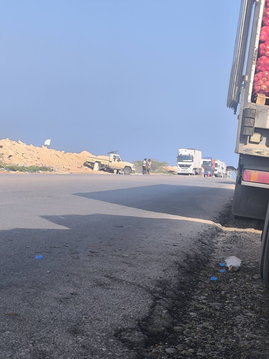 وأكدت المصادر أن عملية التقطع والاحتجاز بدأت منذ يوم الأحد الماضي ولا تزال مستمرة حتى اللحظة، مما تسبب في توقف تام لحركة الشاحنات التجارية المتجهة من وإلى المكلا والمناطق الشرقية.