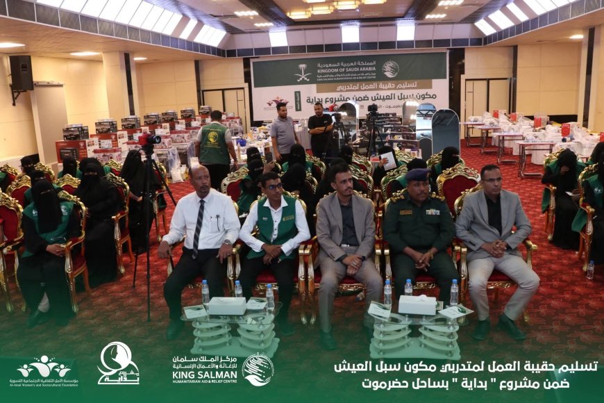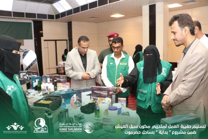 بتمويل مركز الملك سلمان للإغاثة والأعمال الإنسانية تسليم حقيبة العمل لمتدربي مكون سبل العيش ضمن مشروع " بداية " بساحل حضرموت